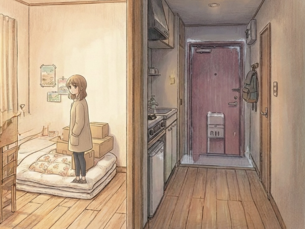 冬になると、その扉の隙間から冷たい風がスッと入り込んでくるような、どこか頼りない部屋だった。